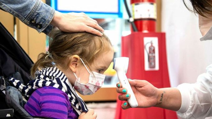 Một bé gái được đo nhiệt độ cơ thể tại bệnh viện ở New York, Mỹ. Ảnh: AFP