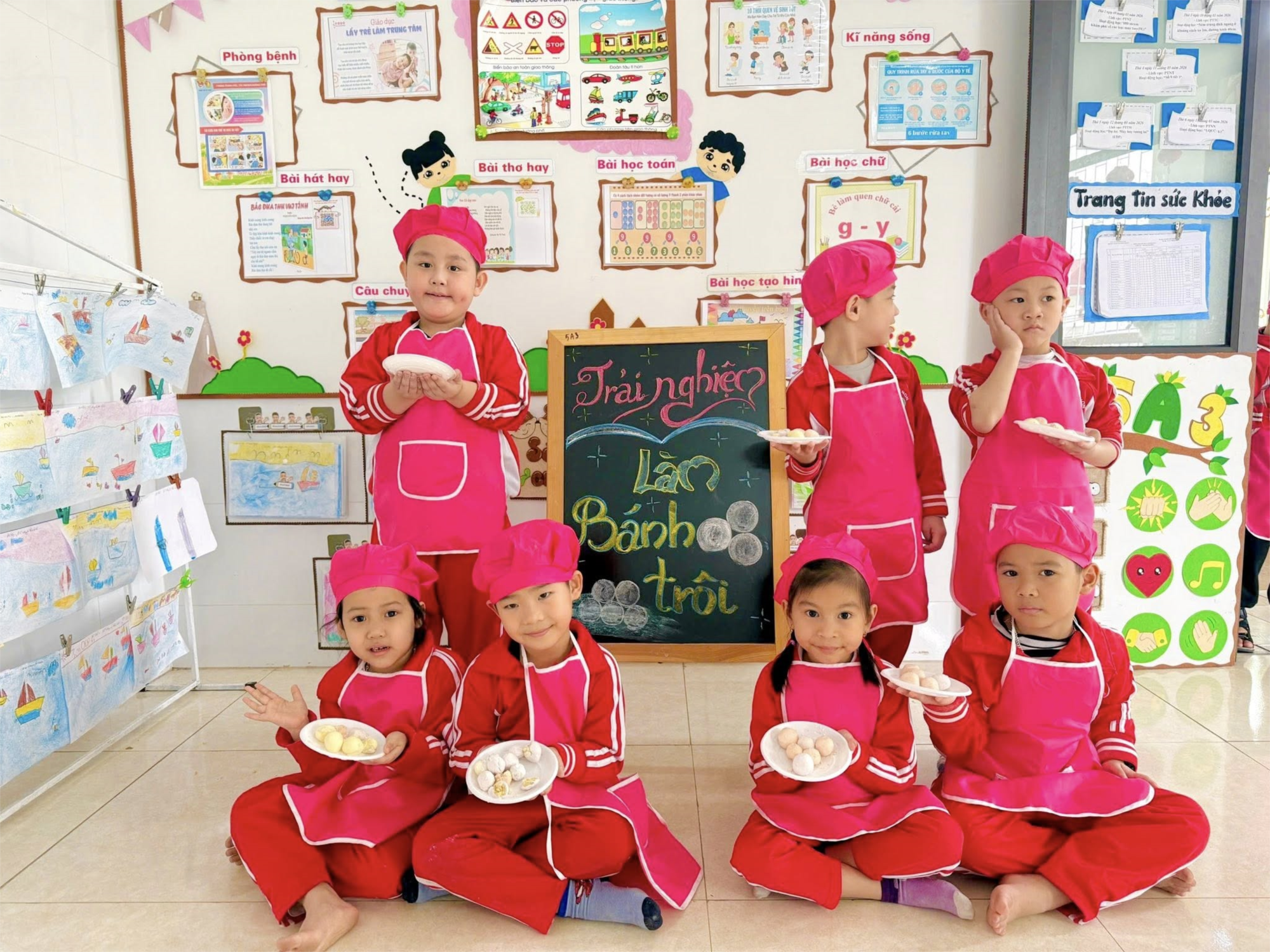 Hoạt động trải nghiệm không chỉ giúp các bé rèn luyện sự khéo léo, tính kiên nhẫn mà còn giúp các con thêm hiểu và yêu những món ăn truyền thống của dân tộc.