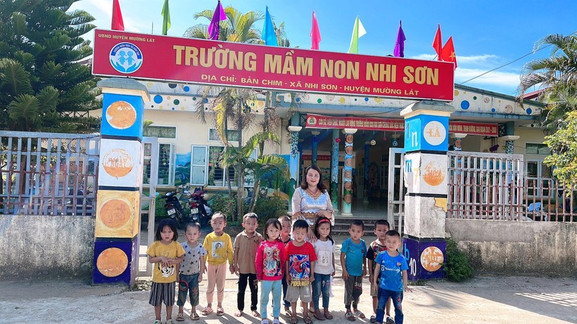 Cô Y Xài và học trò của mình ở Trường Mầm non Nhi Sơn (Mường Lát, Thanh Hóa).