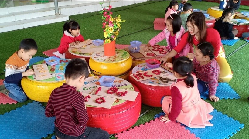 Bên cạnh đó, nhà trường còn chú trọng đổi mới nội dung chương trình, phương pháp GDMN, thực hiện tốt chương trình GDMN, đảm bảo 100% trẻ 5 tuổi hoàn thành chương trình. Và, thường xuyên củng cố mạng lưới trường lớp, tăng cường cơ sở vật chất, trang thiết bị đồ dùng đồ chơi. Chú trọng công tác đào tạo bồi dưỡng đội ngũ giáo viên…”, cô Dương Thị Bình cho biết thêm.