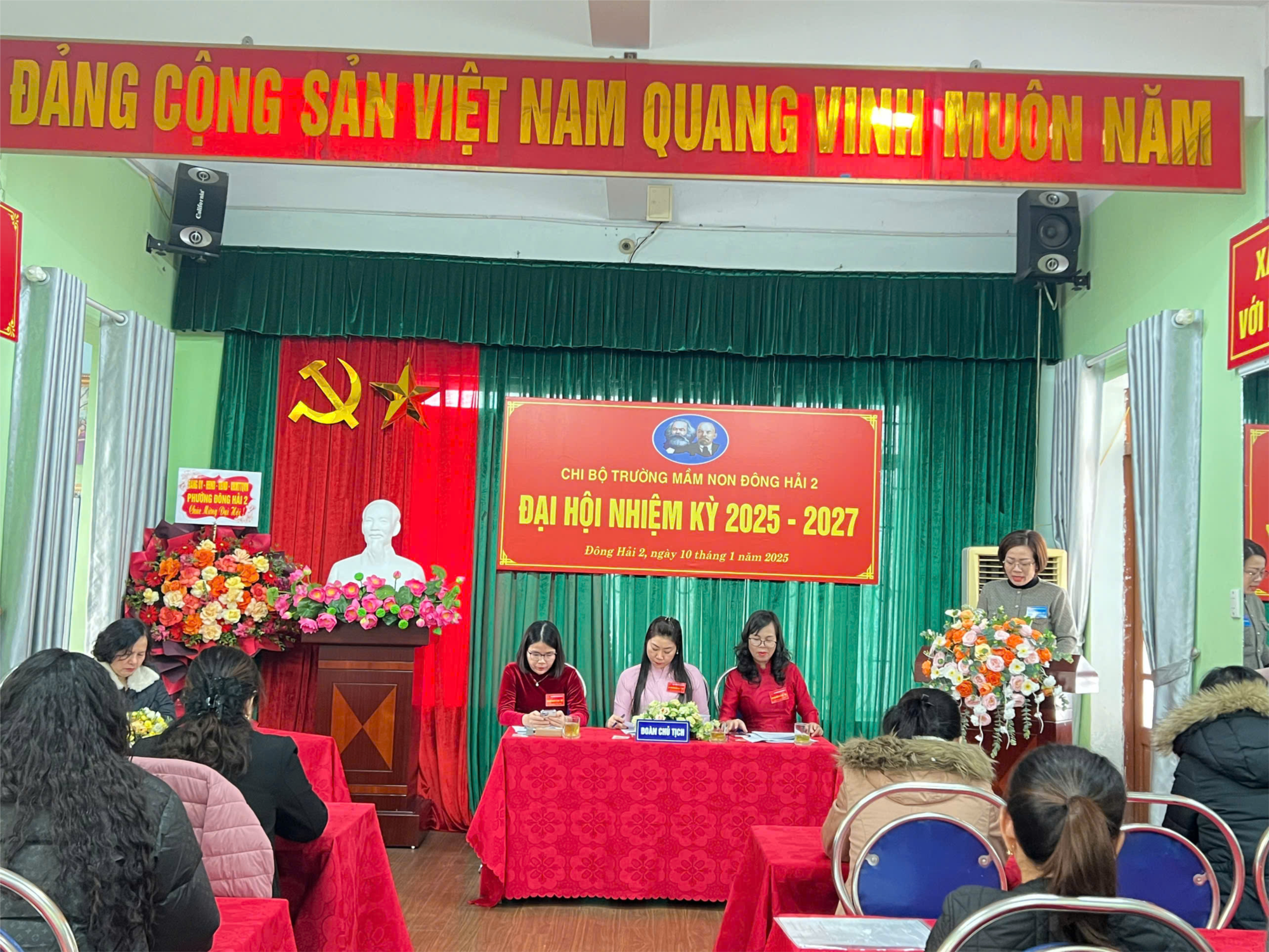 Đại hội Chi bộ Trường Mầm non Đông Hải 2 nhiệm kỳ 2025-2027 đã diễn ra thành công tốt đẹp, khẳng định vai trò lãnh đạo của Đảng trong mọi hoạt động của nhà trường. Đây sẽ là tiền đề quan trọng để Chi bộ tiếp tục thực hiện thắng lợi các mục tiêu trong thời gian tới.