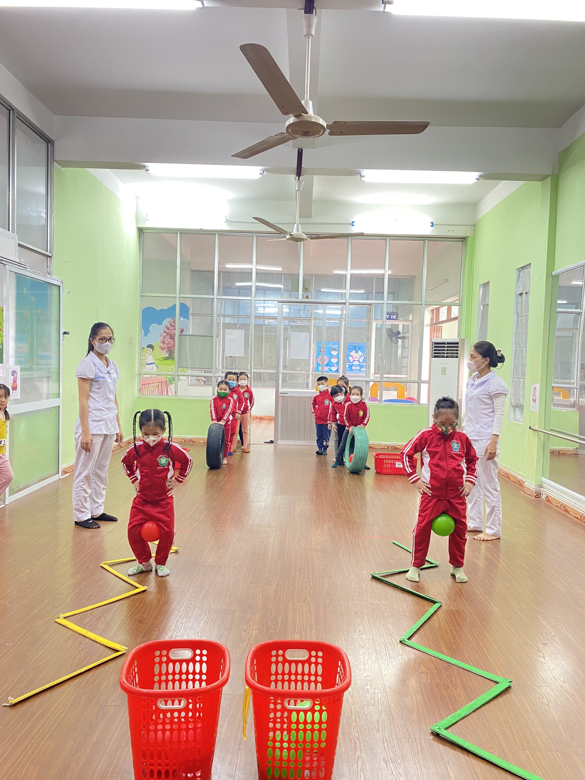 Giáo viên tổ chức các hoạt động tập tô, tập vẽ giúp trẻ làm quen với các nét cơ bản của chữ viết tiếng Việt và biết cách đưa nét tạo thành chữ viết. Chơi các trò chơi luyện ngón tay nhằm rèn luyện vận động của các cơ nhỏ và sự khéo léo của các ngón tay, sự phối hợp tay, mắt như chơi buộc dây, cài cúc, xếp hột hạt, chơi lăn bóng, chuyền bóng, ném trúng đích,…