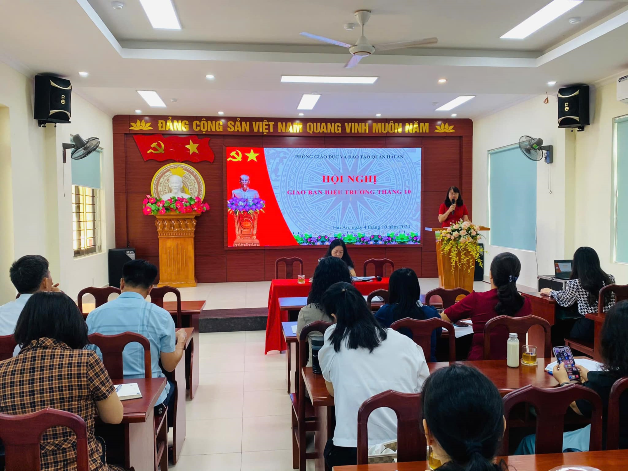 Sáng ngày 4/10/2024, Phòng GD&ĐT đã tổ chức hội nghị giao ban Hiệu trưởng các cấp học đánh giá công tác chuyên môn tháng 9 và triển khai nhiệm vụ công tác tháng 10 năm học 2024-2025.