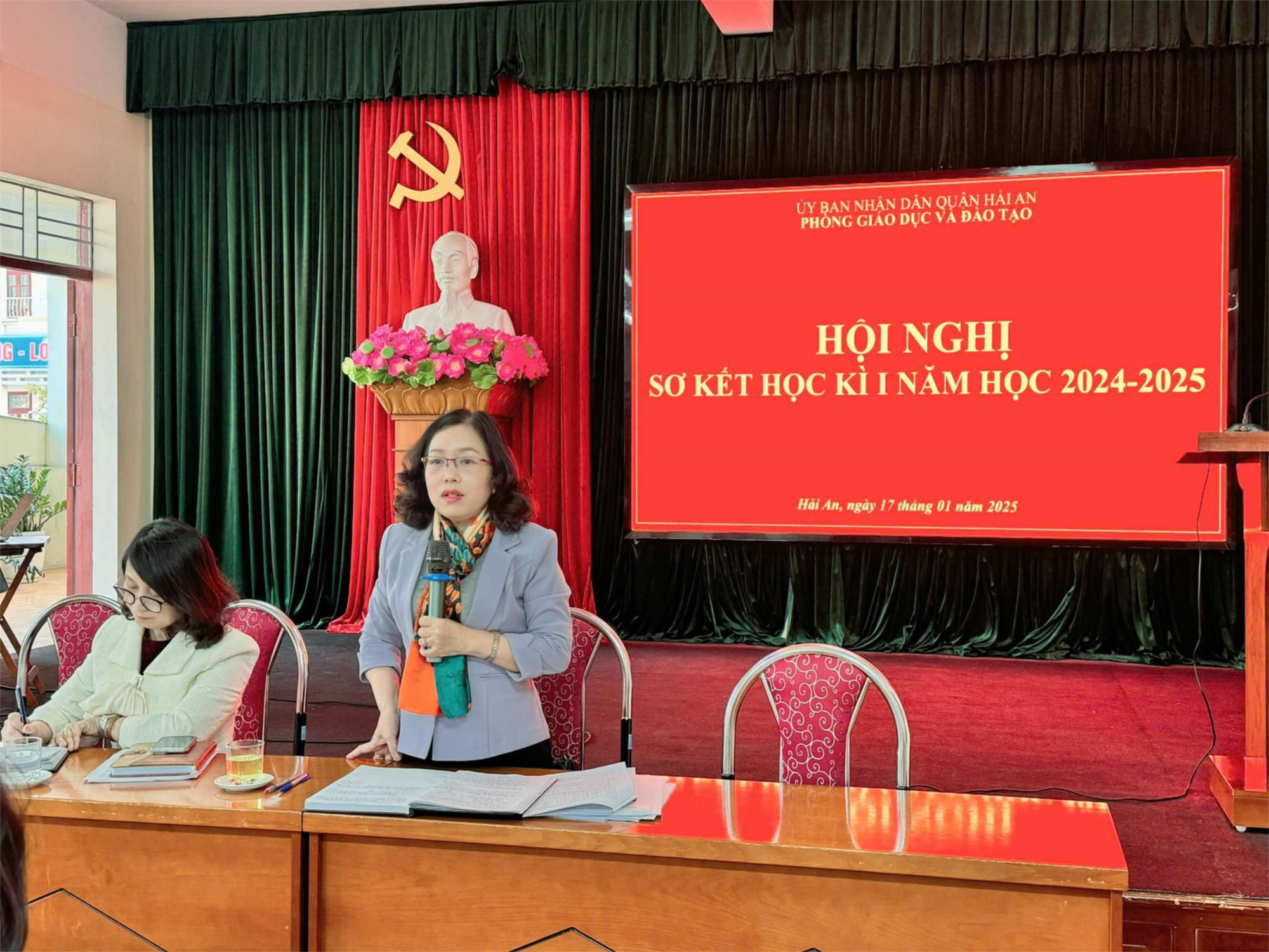 Tại Hội nghị, Phòng GD&ĐT đã đánh giá kết quả triển khai thực hiện nhiệm vụ học kì I của các cấp học, ghi nhận thành tích của các nhà trường đạt được đồng thời chỉ ra