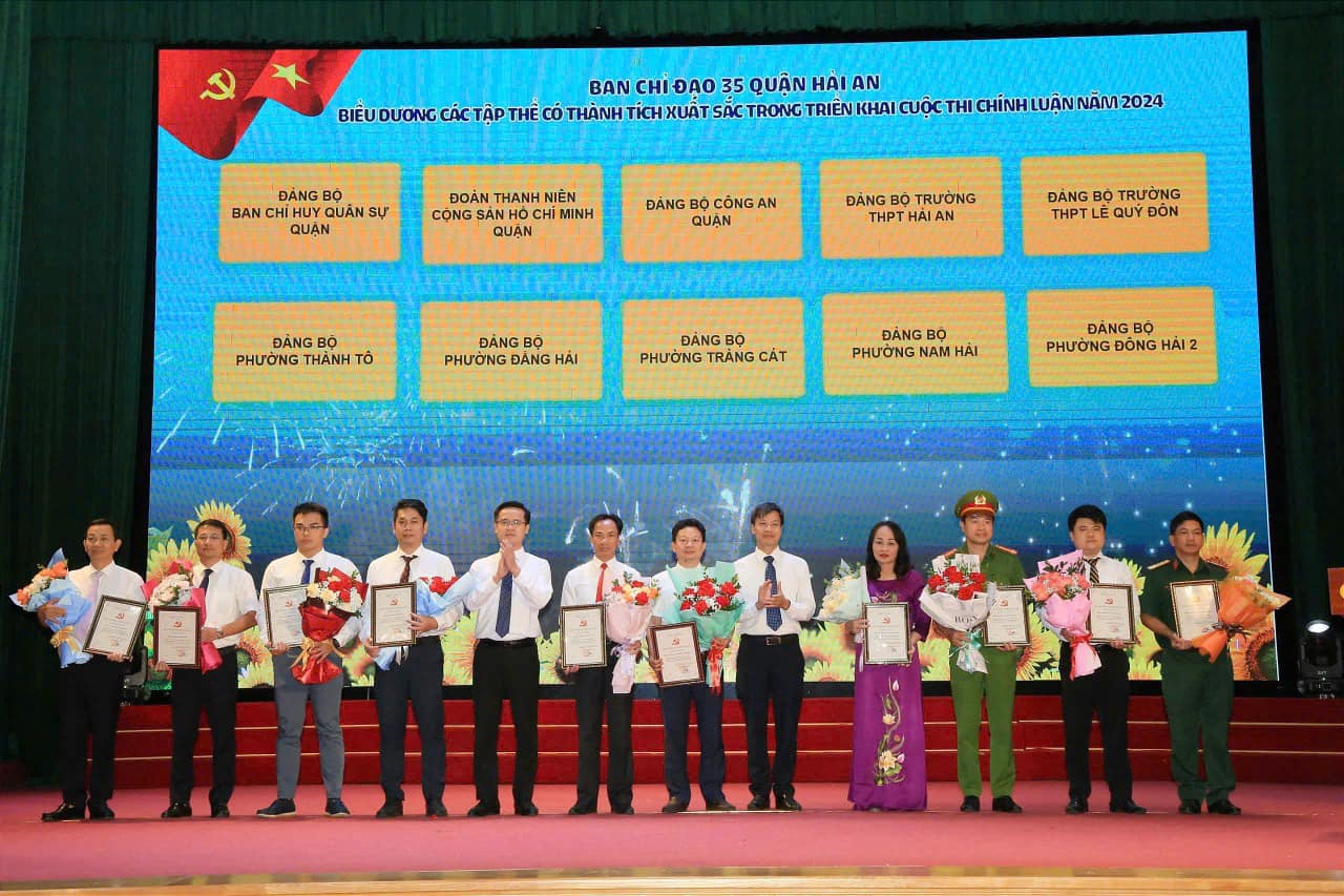Tại hội nghị tổng kết cuộc thi, Chủ tịch UBND quận tặng giấy khen cho 3 tập thể, 3 cá nhân; Biểu dương 10 tập thể và 25 cá nhân có tác phẩm xuất sắc tham gia cuộc thi chính luận về bảo vệ nền tảng tư tưởng của Đảng lần thứ tư năm 2024.