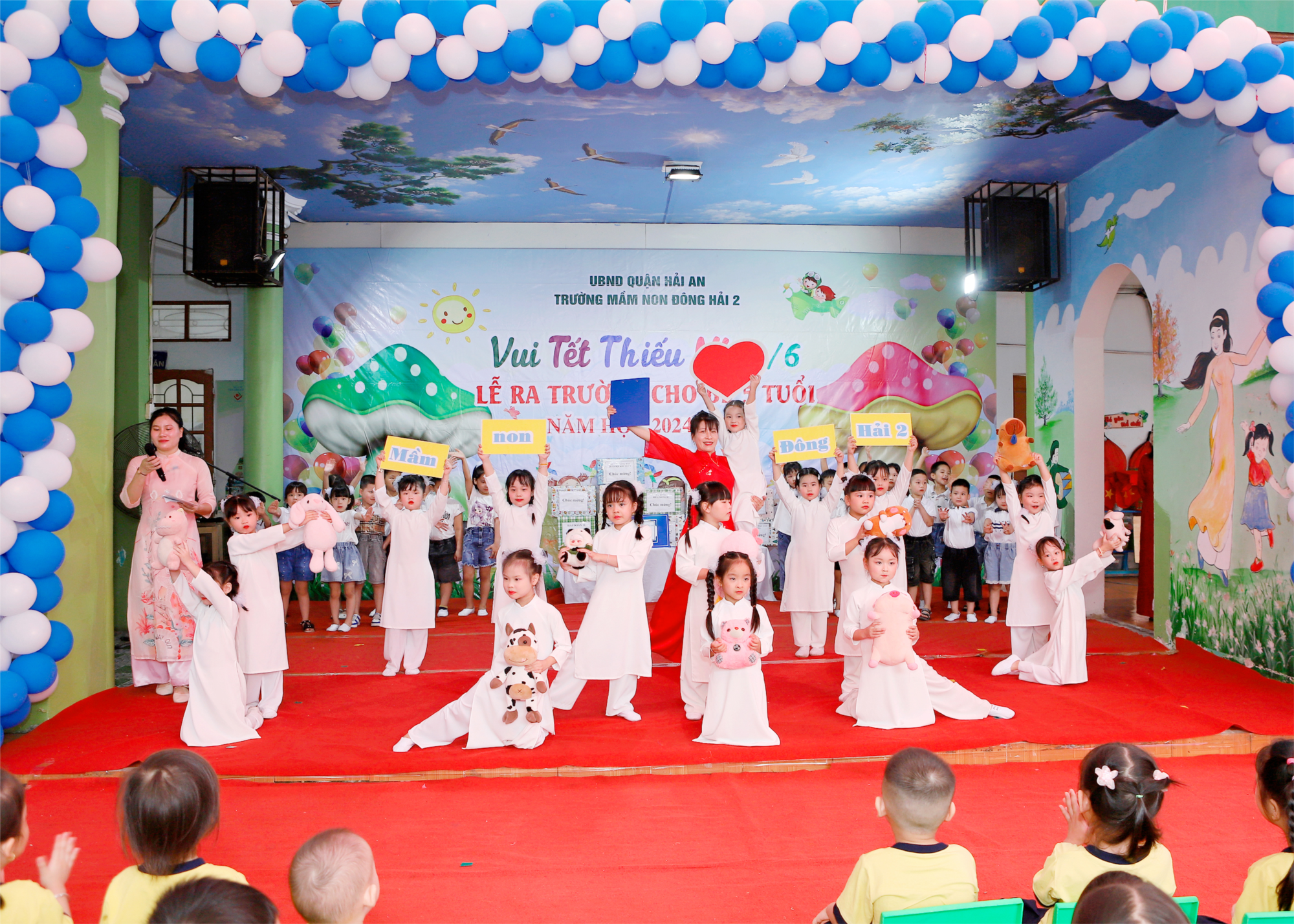 Sáng ngày 29 tháng 5 năm 2025 trường Mầm non Đông Hải 2 tổ chức liên hoan bé vui tết thiếu nhi 1/6 và lễ ra trường cho trẻ 5T