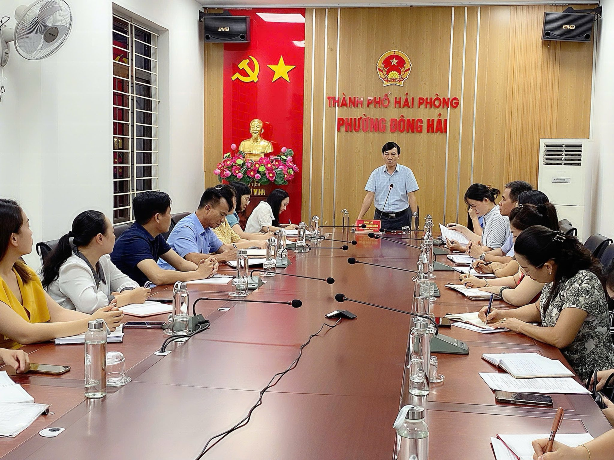 Chiều 27/8, UBND phường Đông Hải tổ chức hội nghị giao ban với các hiệu trưởng các trường Mầm non, Tiểu học, THCS, THPT và trường phổ thông nhiều cấp học trên địa bàn. Đồng chí Nguyễn Trọng Khiêm - Chủ tịch UBND phường chủ trì hội nghị. Cùng dự có các đồng chí: Nguyễn Khánh Chi – PCT UBND phường, đại diện lãnh đạo, chuyên viên phòng Văn hóa – Xã hội, Văn phòng HĐND, UBND, các phòng, ban, đơn vị liên quan của phường.