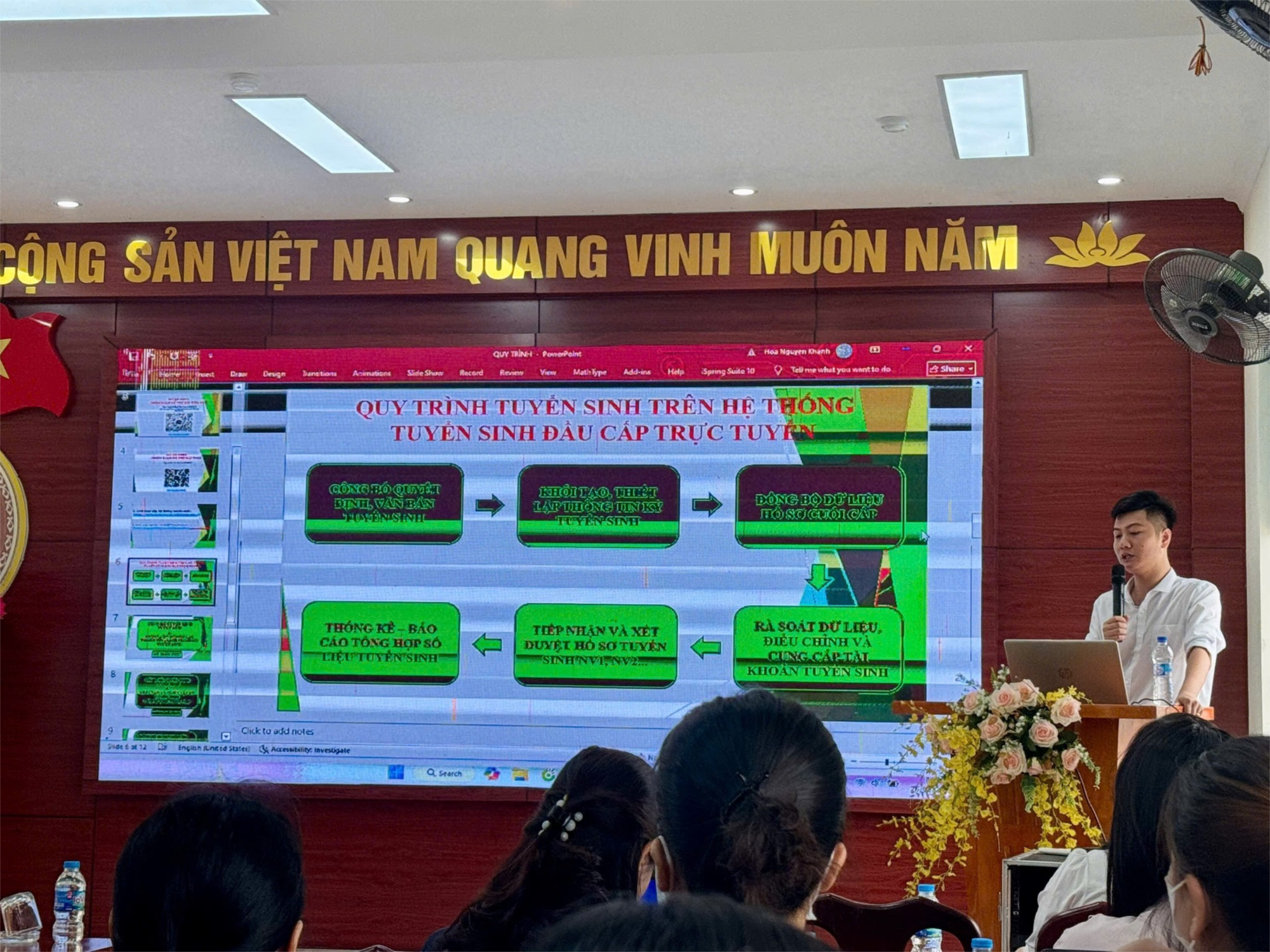 Thực hiện chỉ đạo của phòng GDĐT quận Hải An, sáng ngày 26/5/2025, trường Mầm non Đông Hải 2 đã tham dự tập huấn hệ thống tuyển sinh đầu cấp trực tuyến mầm non, tiểu học, THCS. Tại buổi tập huấn, các nhà trường đã được đ/c Nguyễn Khánh Hoà - kỹ thuật viên Hương Việt Group hướng dẫn quy trình tuyển sinh trên hệ thống và giải đáp thắc mắc trước kỳ tuyển sinh năm học 2025 - 2026.