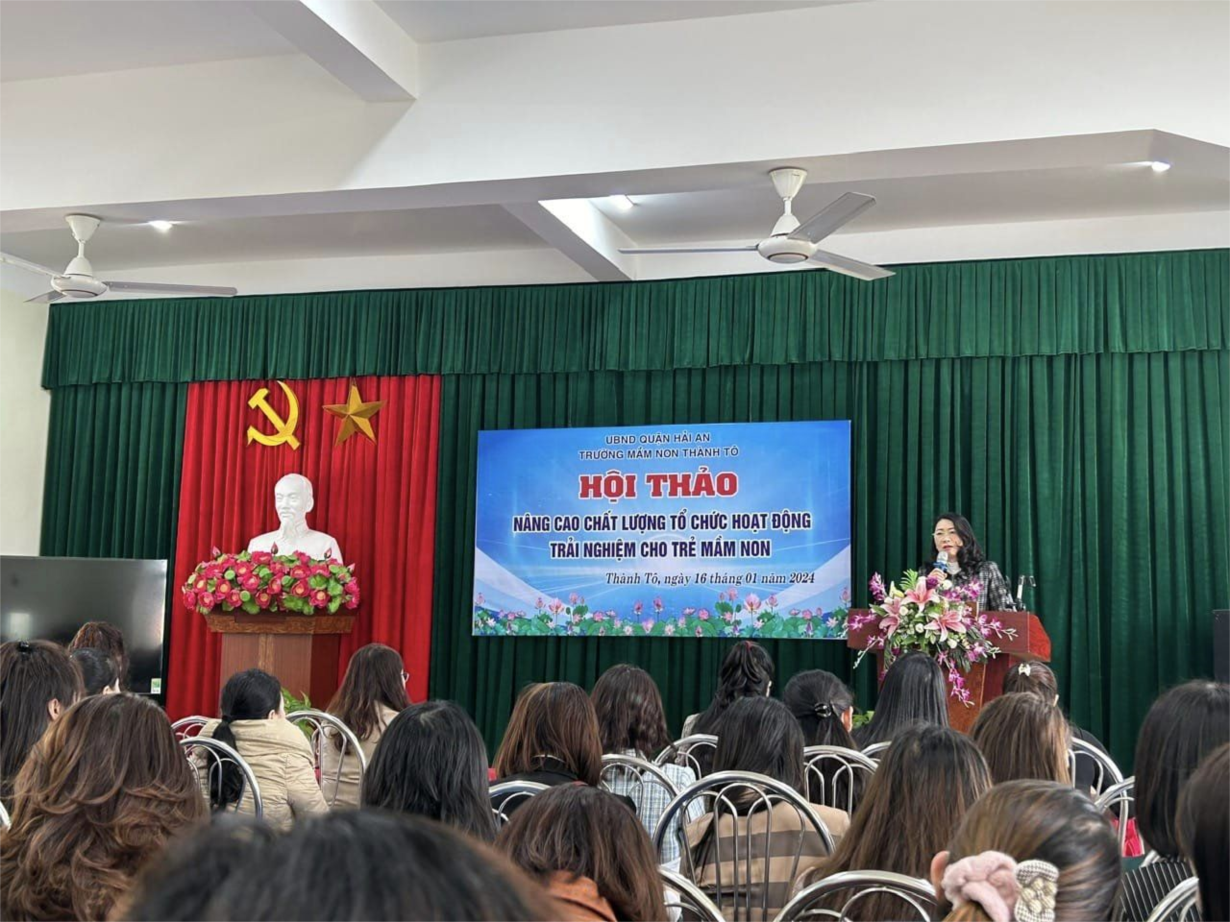 Thực hiện Kế hoạch chuyên môn năm học 2023-2024 của Phòng GD&ĐT, ngày 16/01/2024 trường Mầm non Đông Hải 2 tham dự Hội thảo " Nâng cao chất lượng tổ chức hoạt động trải nghiệm cho trẻ mầm non " tại trường MN Thành Tô
